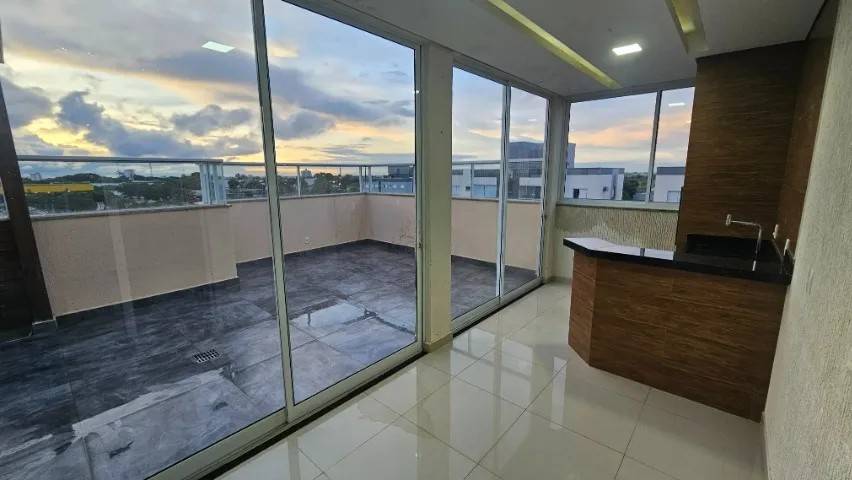 Cobertura de 3 quartos sendo uma suite com armarios, área de churrasqueira, 2 salas com mobiliário, 3 banheiros com armários, cozinha e área de serviço com armários, 1 vaga de garagem, no 3º pavimento, área privativa de 143, 10m², área total de 193, 12m² e no Condomínio Interlagos situado no bairro Novo Mundo, próximo a Praça do Jacaré.